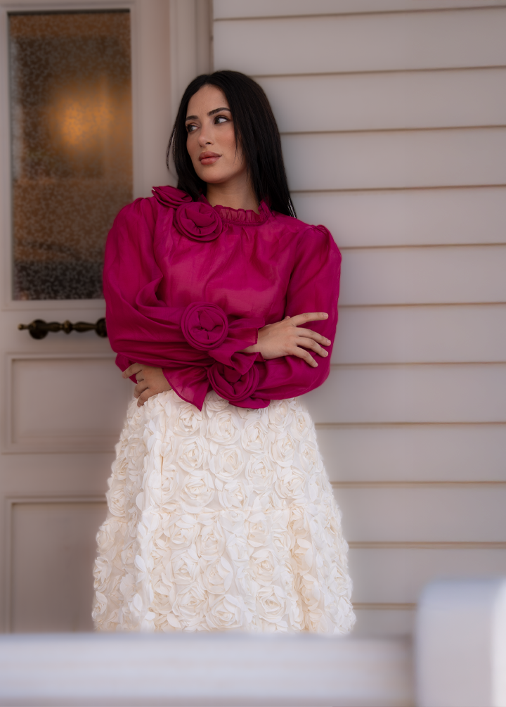 Yaka ve Kol Detaylarında El İşçiliği Gül Detayı Bulunmaktadır