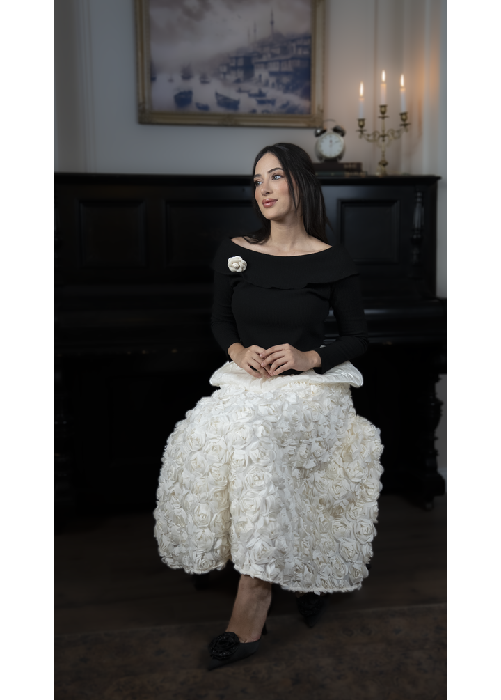 Gül Detaylı Düşük Omuz Bluz