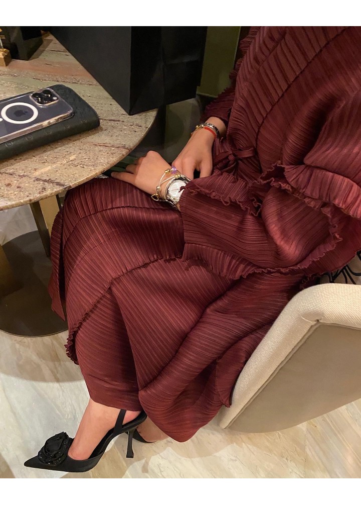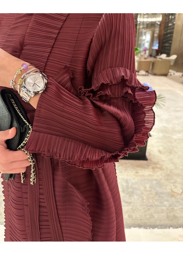 Fırfırlı Royal Elbise/Abaya Bordo